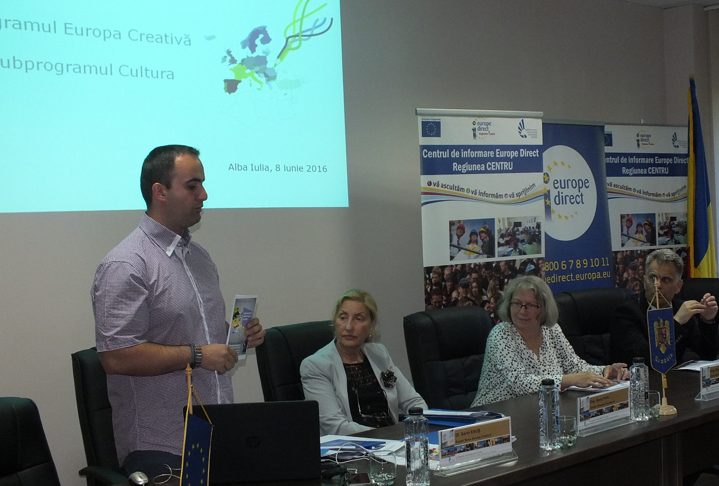 Timp de doua zile la Alba Iulia se desfasoara un seminar de informare si atelier de scriere proiecte pentru obtinere finantare europeana pentru proiecte din domenii creative si culturale. Seminarul de la Alba Iulia, organizat de catre Centrul Europe Direct Regiunea Centru din cadrul ADR Centru, alaturi de reprezentantii Biroului Europa Creativa din cadrul Ministerului Culturii, a atras peste 40 de participanti. Sesiunea de lucru ce are loc in perioada 8 – 9 iunie 2016, va fi urmata de o alta sesiune de informare ce va avea loc in data de 14 iunie 2016 la Sibiu, in cadrul Bursei de spectacole din Festivalul International de Teatru.