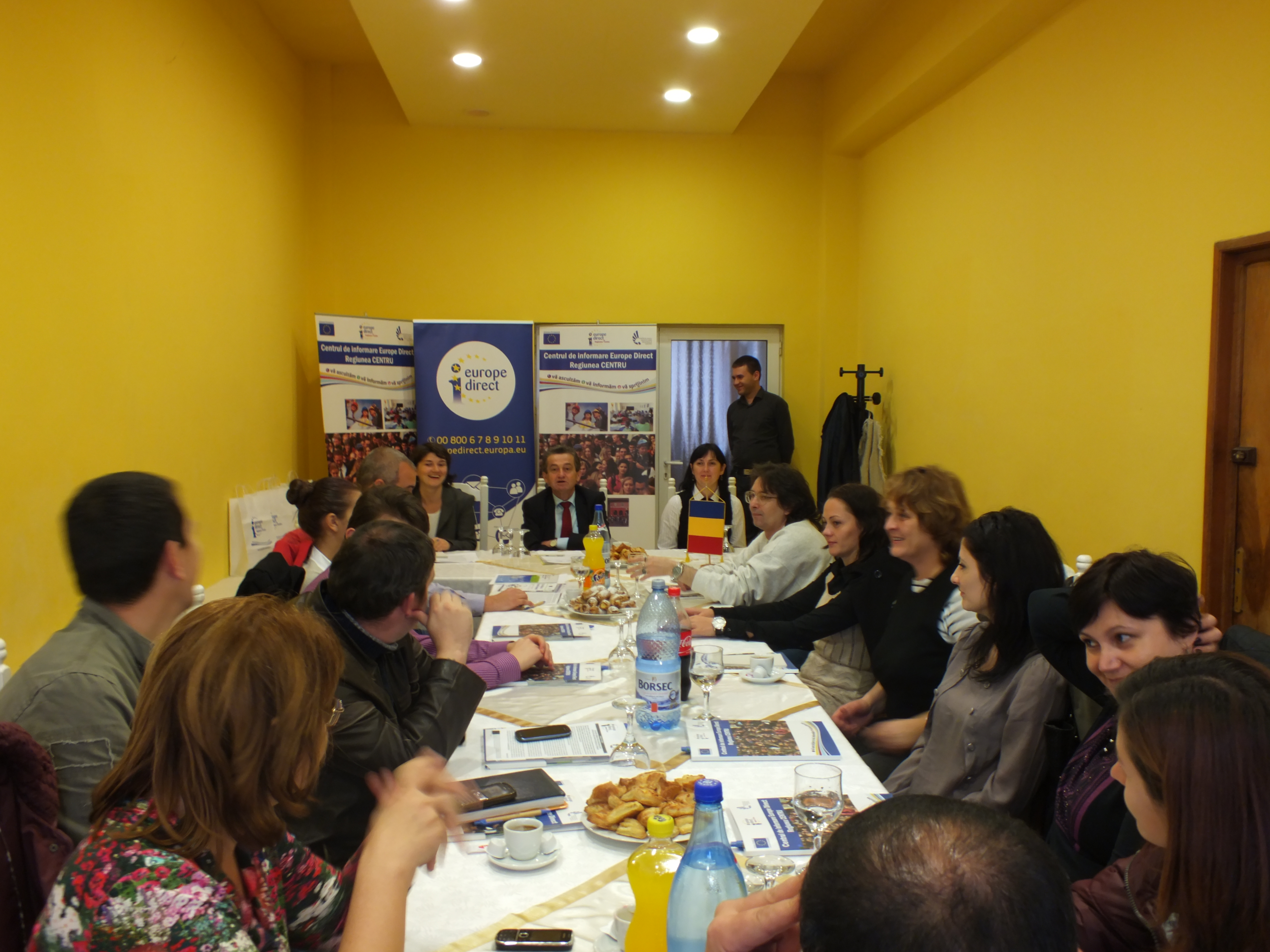 Publicat in: 04 octombrie, 2013Mai multe sesiuni de instruire pe tematica fondurilor nerambursabile – dorinta exprimata constant de solicitantii de finantare europeana! Iar Centrul de Informare Europe Direct Regiunea Centru a raspuns aces-tei nevoi prin seminarul organizat pentru prezentarea politicilor agricole 2014-2020. Seminarul a fost mode-rat de catre domnul Ion Dumitrel, presedintele CJ Alba, domnul Ioan Sincu, director general adjunct al Centrului Regional de Plaţi pentru Dezvoltare Rurala şi Pescuit 7 Centru Alba Iulia, precum si domnul Mihai Pocanschi, director al Departamentului Planificare si Proiecte Regionale din cadrul ADR Centru. Peste 70 de reprezentanti ai autoritatilor publice locale din mediul rural, persoane fizice, consultanti sau specialisti in agricultura au participat la seminar si au subliniat ca e nevoie sa se discute punctual, pe categorii de beneficiari, cu cei ce gestioneaza fondurile nerambursabile.