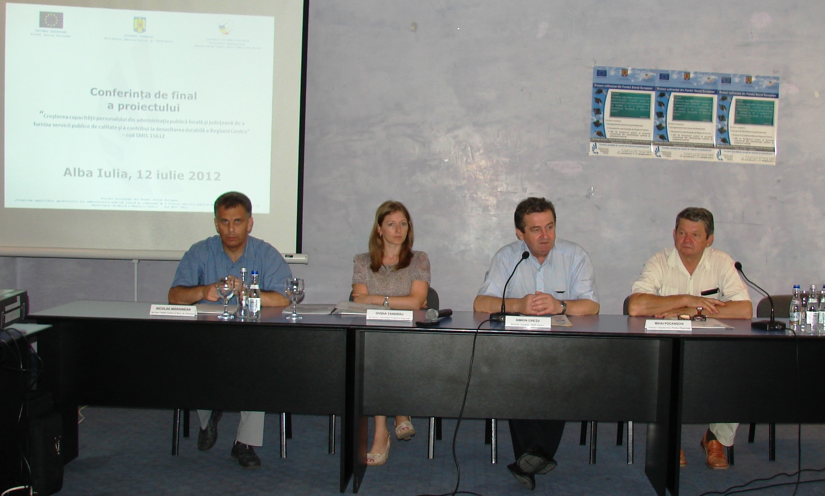 Publicat in: 13 iulie, 2012Agentia pentru Dezvoltare Regionala Centru anunta finalizarea cu succes a proiectului “Cresterea capacitatii personalului din administratia publica locala si judeteana de a furniza servicii publice de calitate si de a contribui la dezvoltarea durabila a Regiunii Centru”, cod SMIS 15612. Proiectul este co-finantat din Fondul Social European prin Programul Operational Dezvoltarea Capacitatii Administrative 2007-2013 si implementat la nivelul Regiunii Centru in perioada 2011 – 2012. Cu aceasta ocazie, ADR Centru a organizat in data de 12 iulie 2012, la Alba Iulia, conferinta de incheiere a proiectului, la care au participat 50 de persoane.